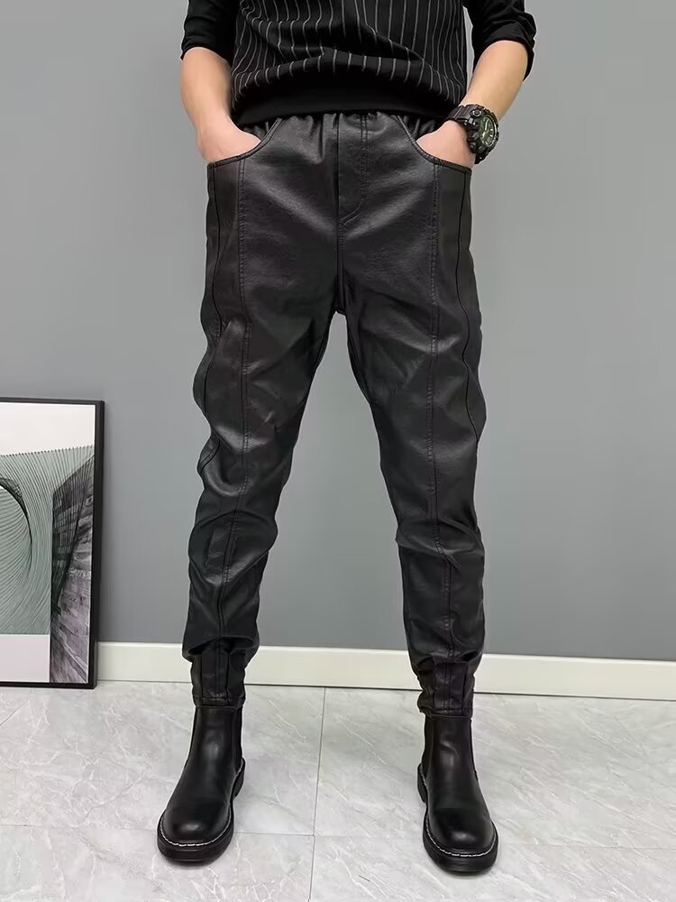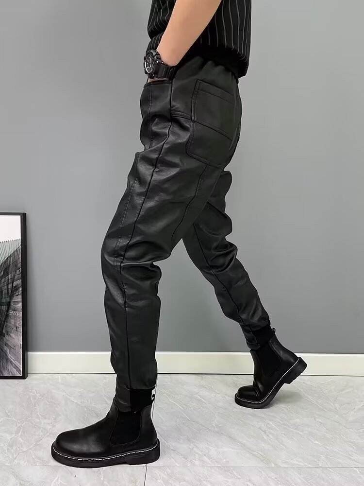 Black Motorcycle Takeaway Rider Windproof Warm Casual Pants With Cuffs