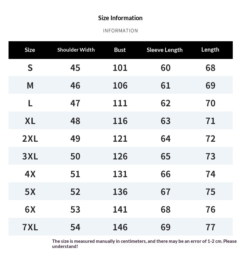 Sizes: S, M, L, XL, 2XL, 3XL, 4XL, 5XL, 6XL