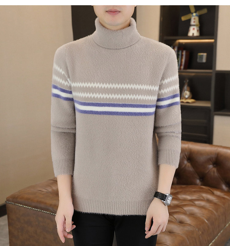 Knitted Gold Mink Sweater With A Turn-up Collar