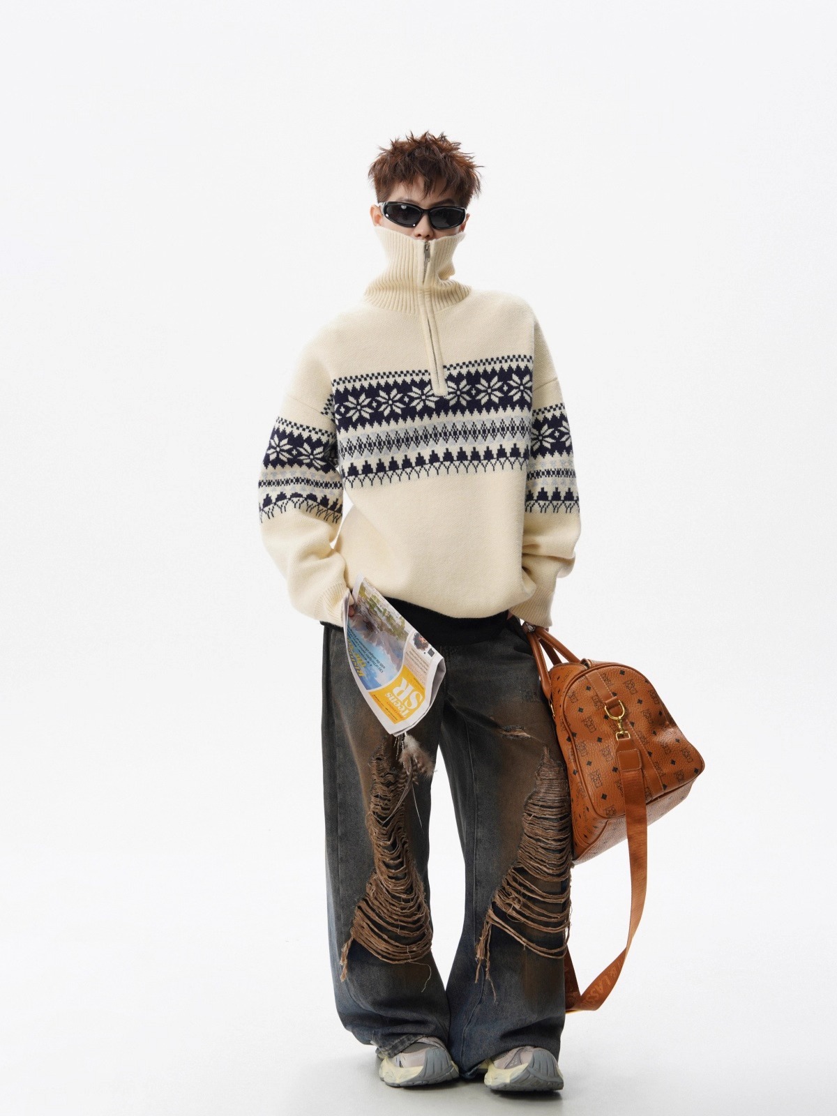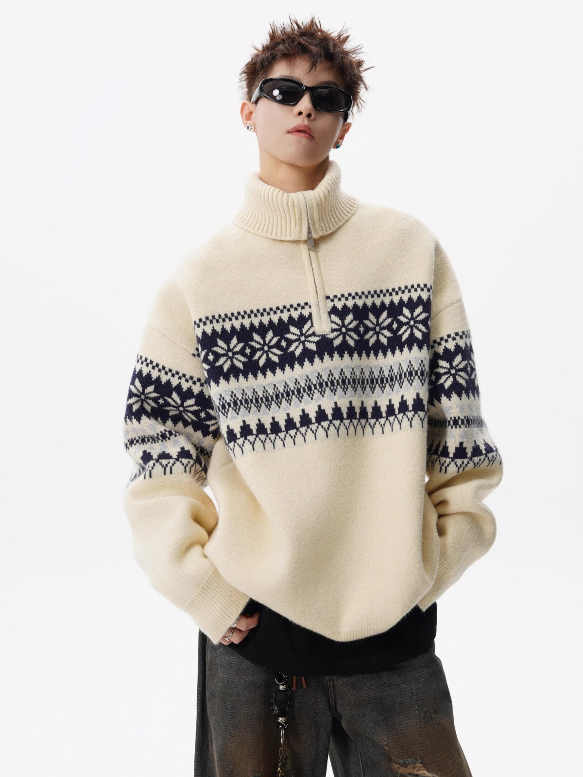 Loose-fitting Knitted Turtleneck Sweater With A Half-zip