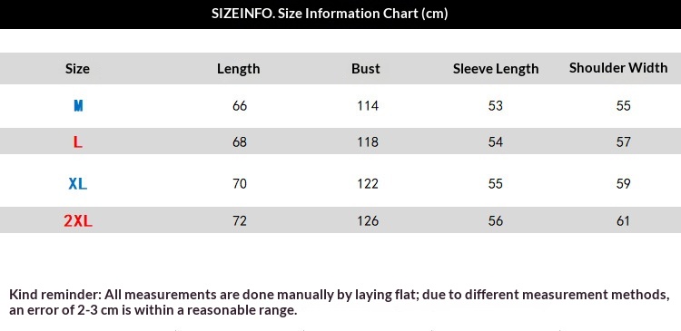 1. Asian sizes are 1 to 2 sizes smaller than European and American people. Choose the larger size if your size between two sizes. Please allow 2-3cm differences due to manual measurement. 2. Please check the size chart carefully before you buy the item, if you don't know how to choose size, please contact our customer service. 3.As you know, the different computers display colors differently, the color of the actual item may vary slightly from the following images.