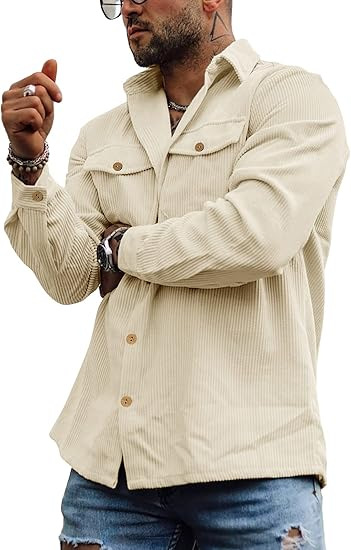 Men's Corduroy Button-Up Jacket Shirt