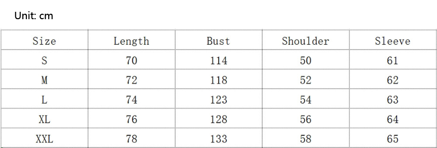 Sizes: S, M, L, XL, XXL