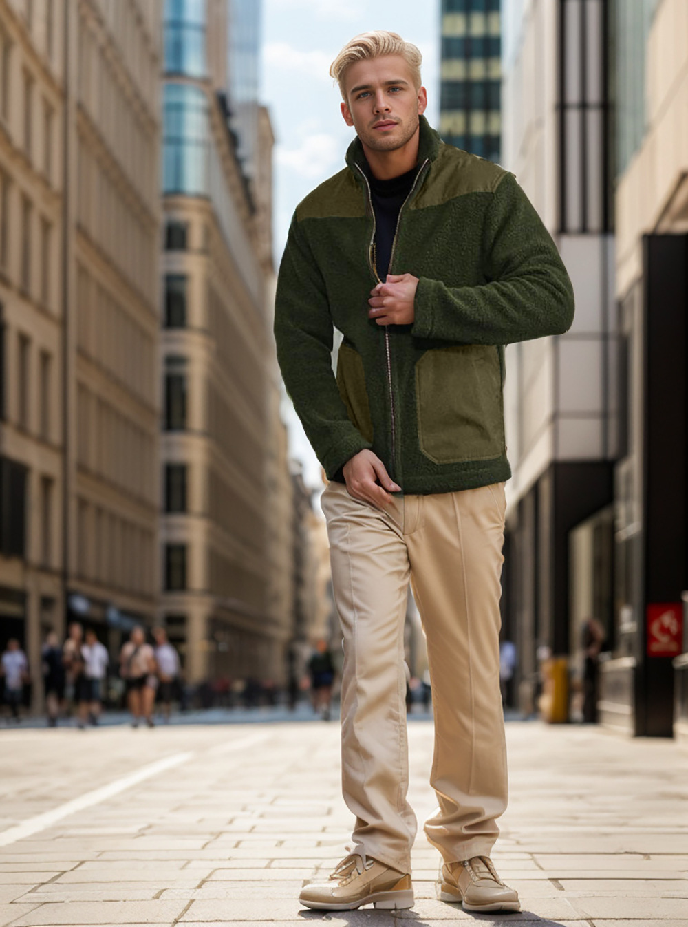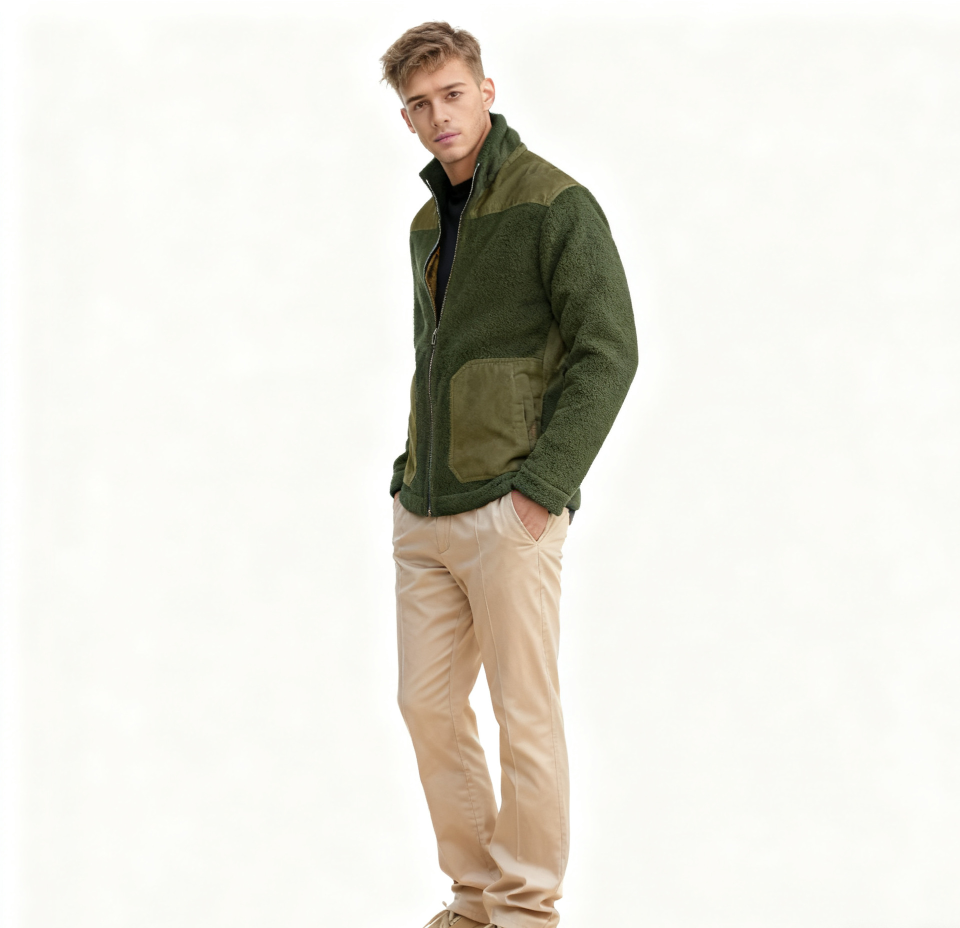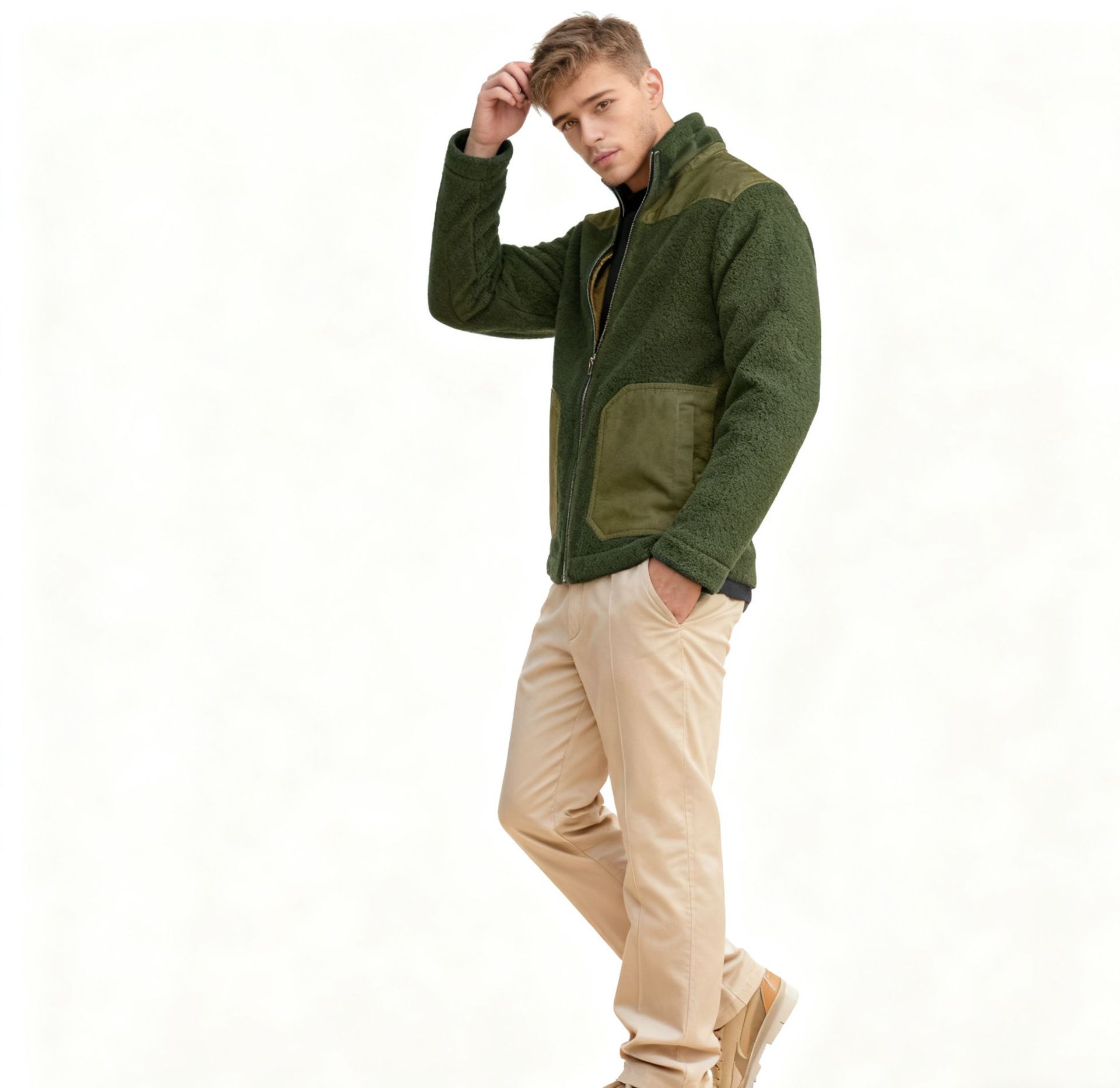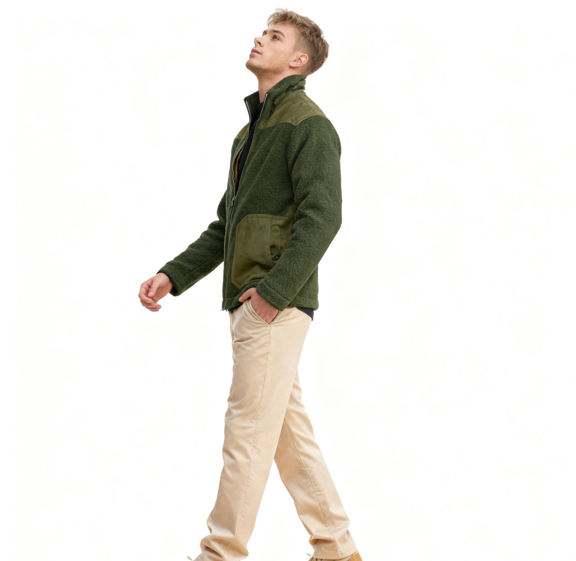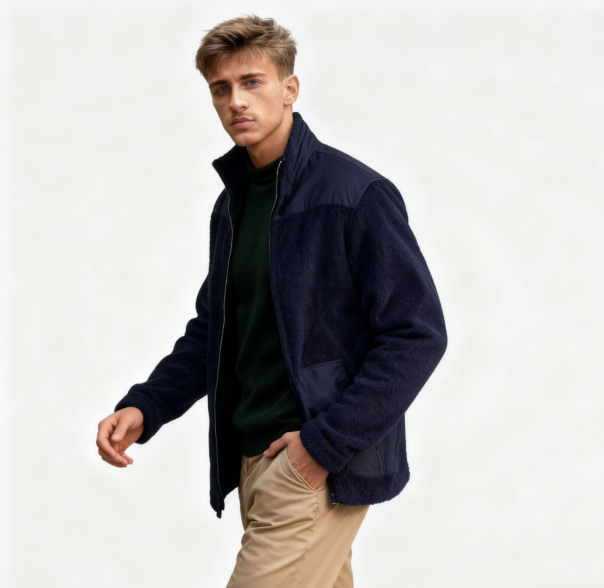 Men's Fleece Patchwork Color-Block Stand-Up Collar Fashion Jacket