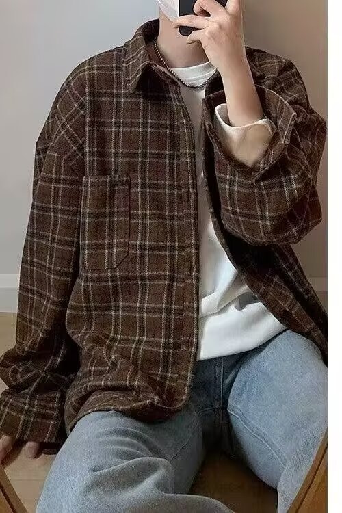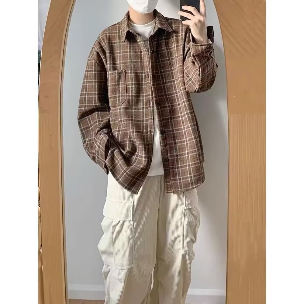 Men's Loose-fit Plaid Jacket For Spring And Autumn