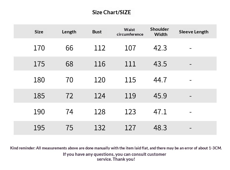 1. Asian sizes are 1 to 2 sizes smaller than European and American people. Choose the larger size if your size between two sizes. Please allow 2-3cm differences due to manual measurement. 2. Please check the size chart carefully before you buy the item, if you don't know how to choose size, please contact our customer service. 3.As you know, the different computers display colors differently, the color of the actual item may vary slightly from the following images.