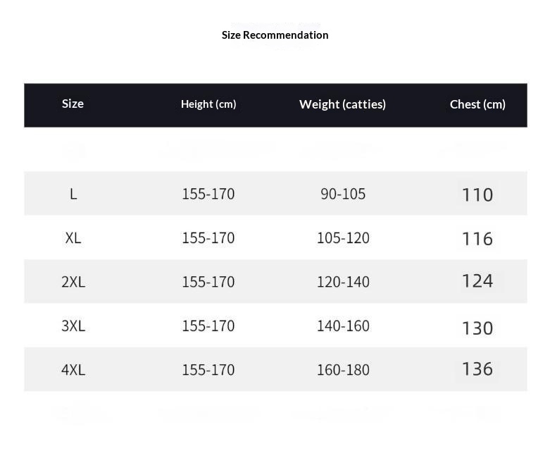 Sizes: L, XL, 2XL, 3XL, 4XL