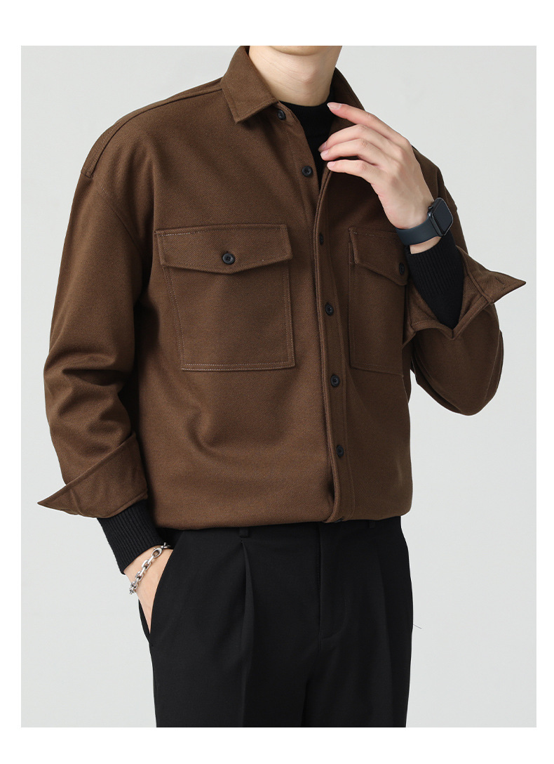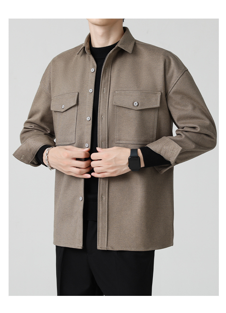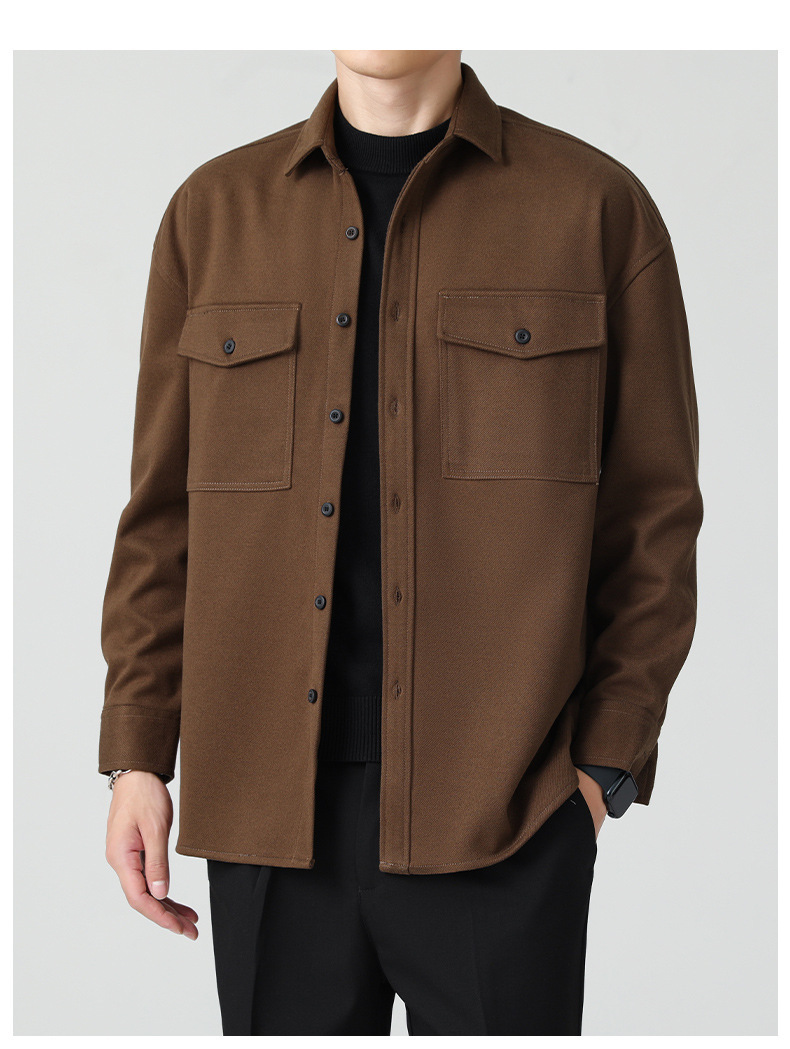 New Thickened Men's Workwear Long-sleeved Loose Wool Casual Jacket