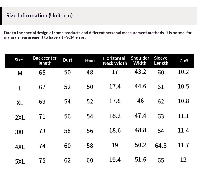 Size: M, L, XL, 2XL, 3XL, 4XL, 5XL