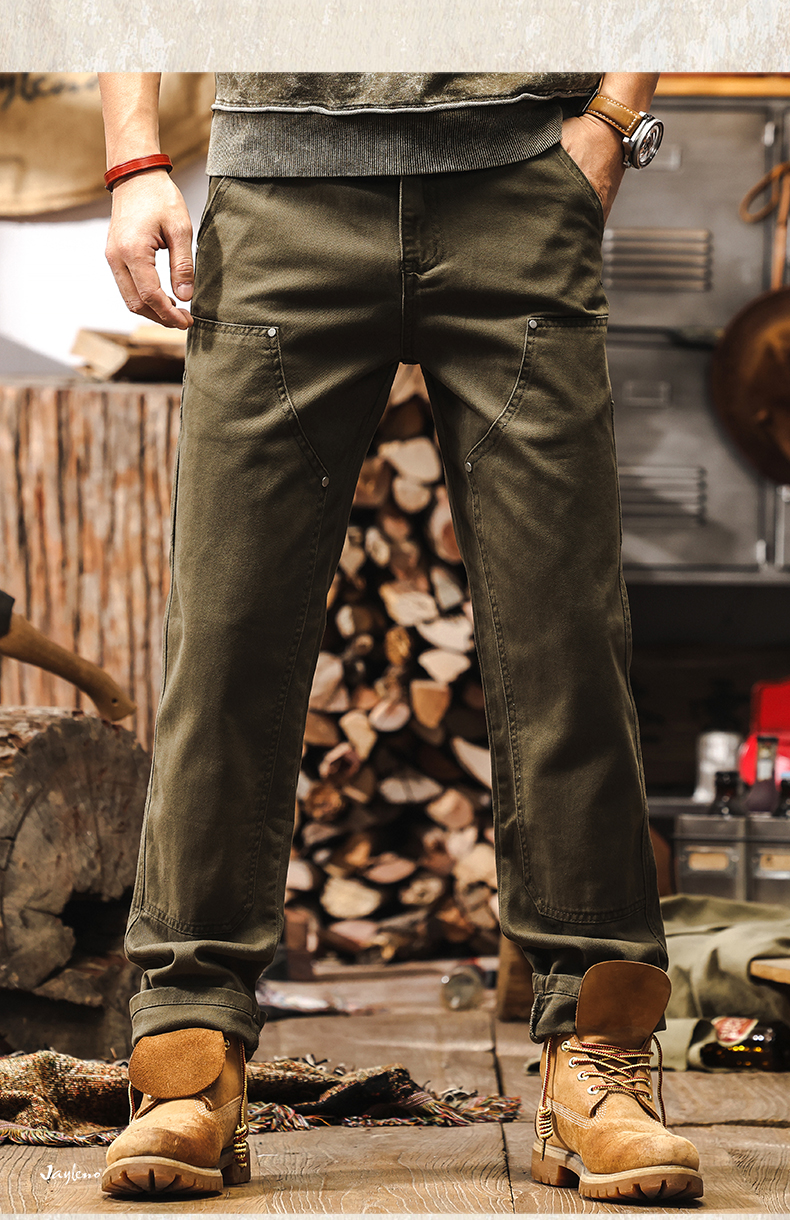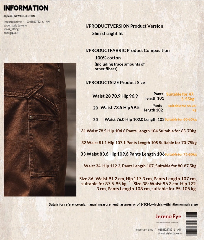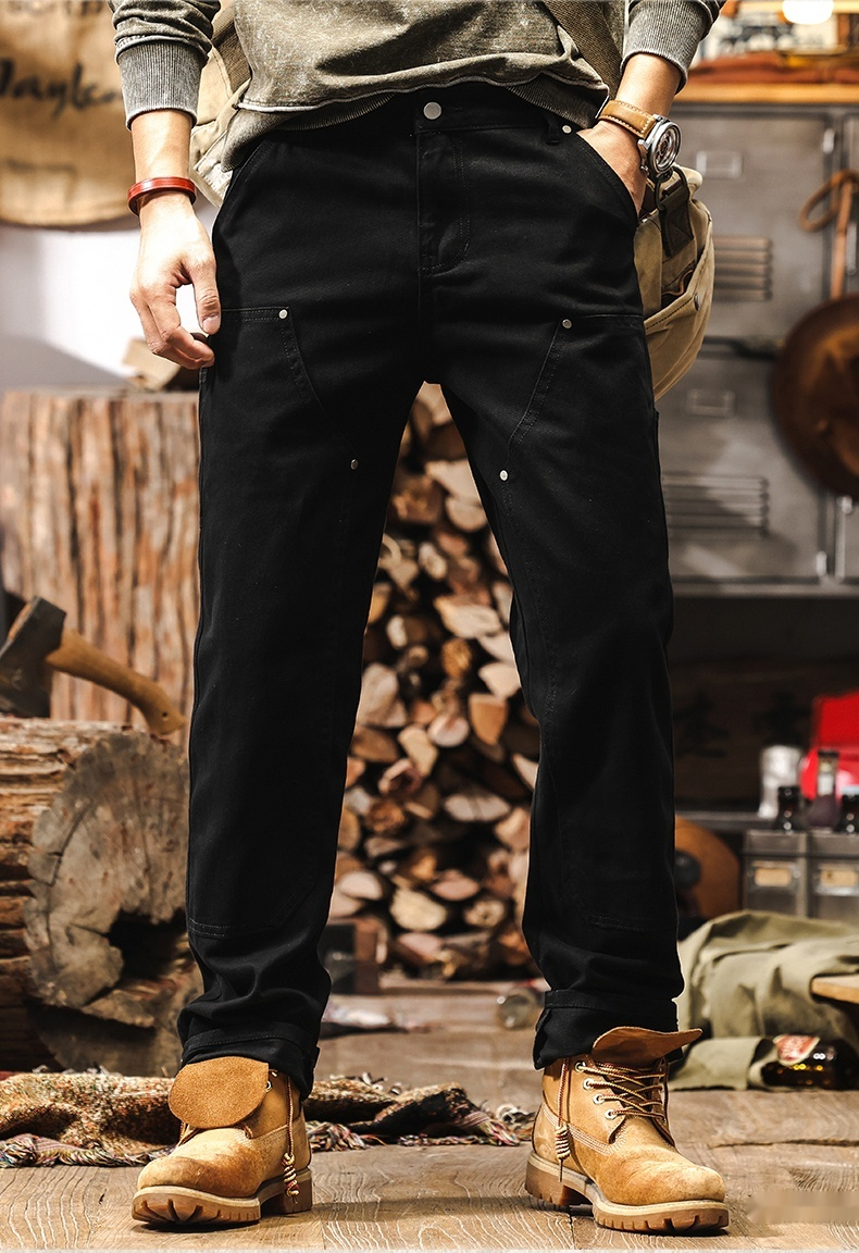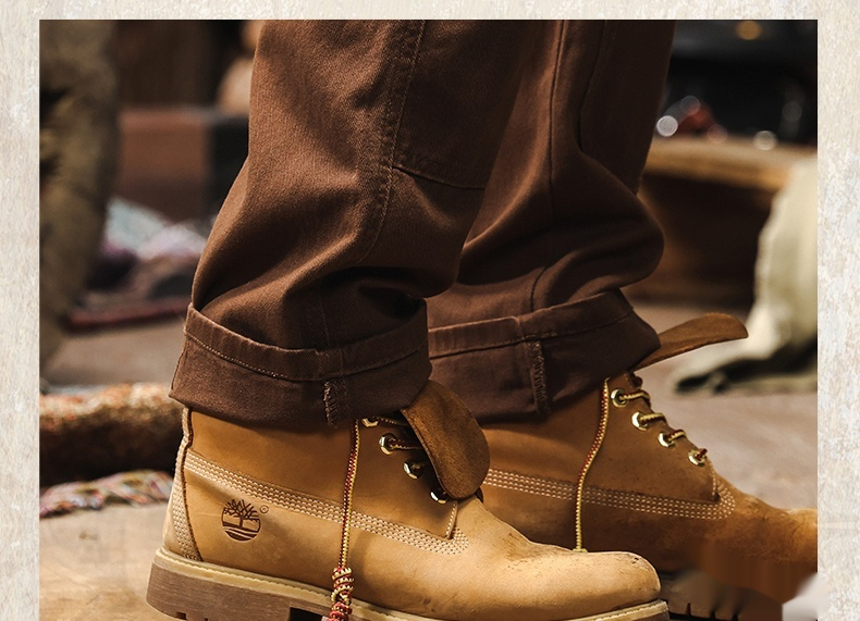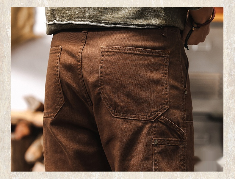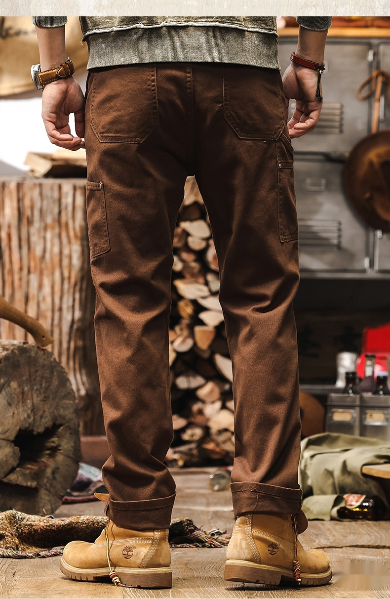 Retro Coffee-colored Denim Straight-leg Casual Trousers