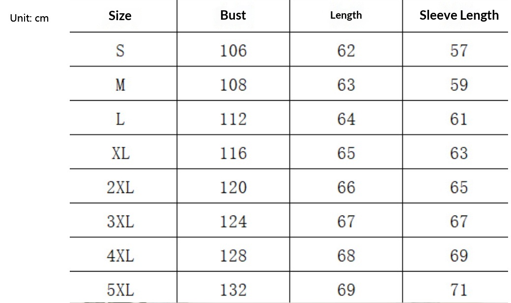 Sizes: S, M, L, XL, 2XL, 3XL, 4XL, 5XL