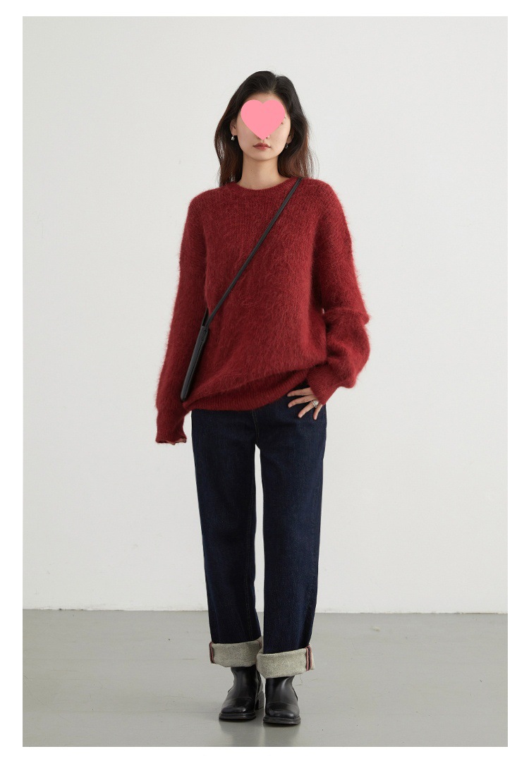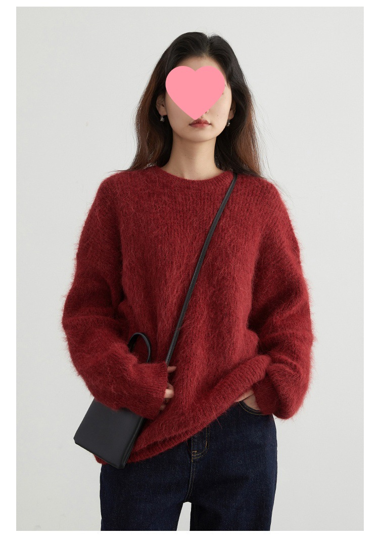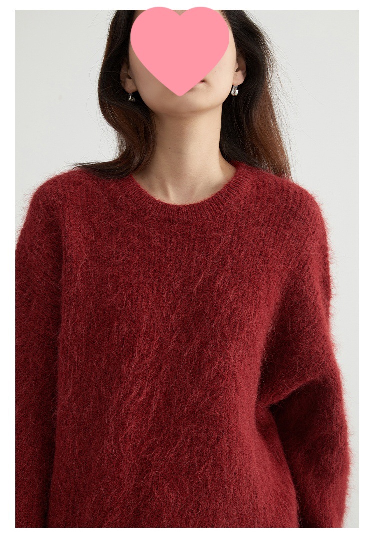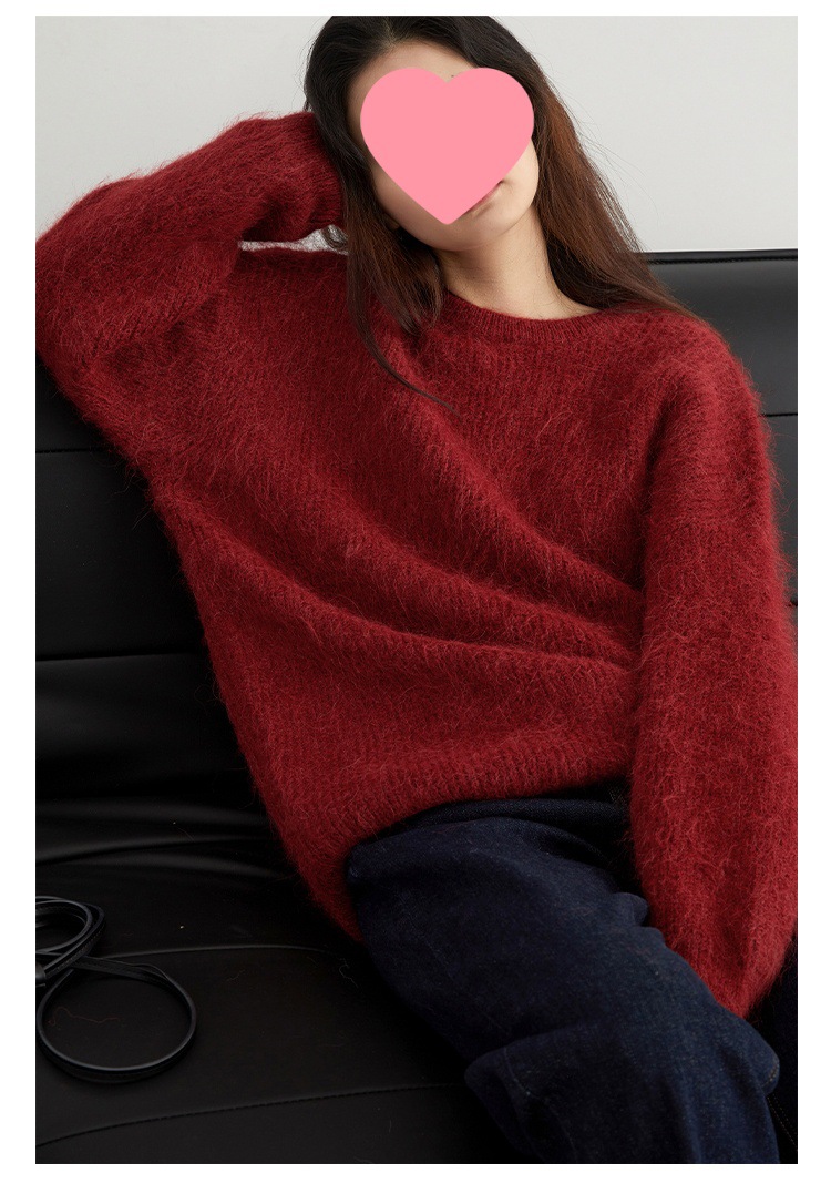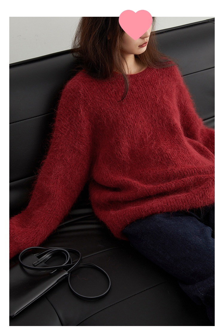 Women's Red Alpaca Wool Pullover Sweater, Soft And Cozy Knit Top Year Wear