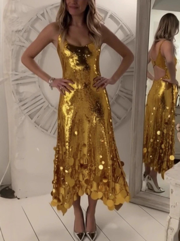 Women's Sequined Sleeveless Party Dress With A Unique Style