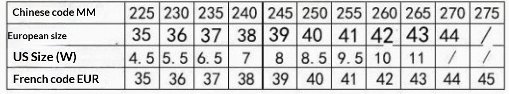 Sizes: 35, 36, 37, 38, 39, 40, 41, 42