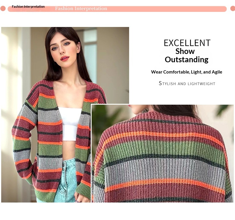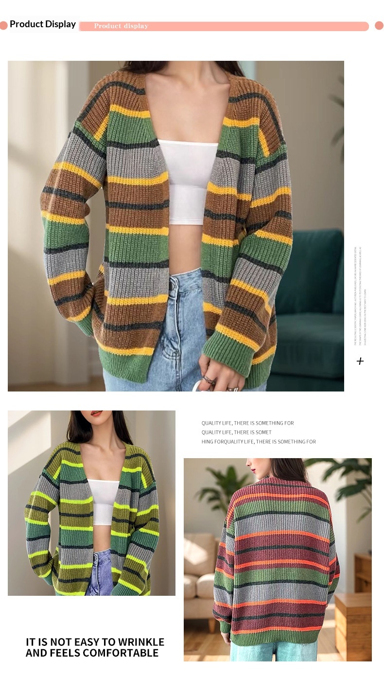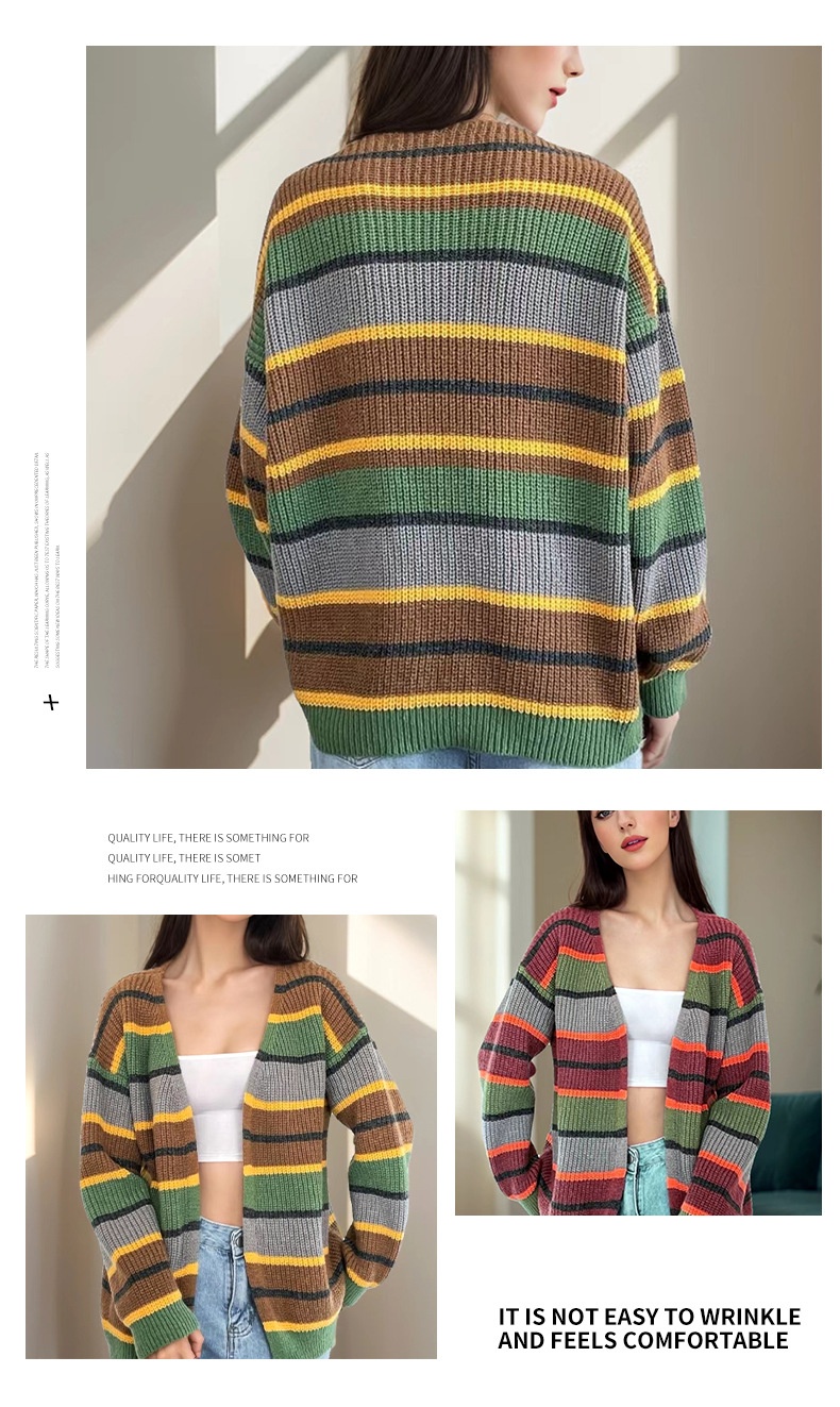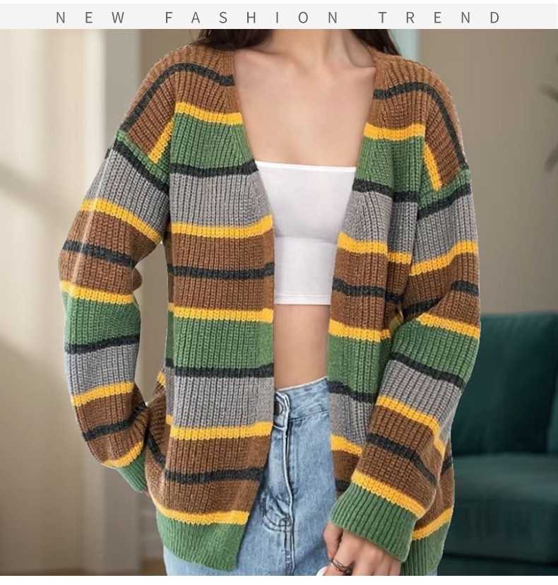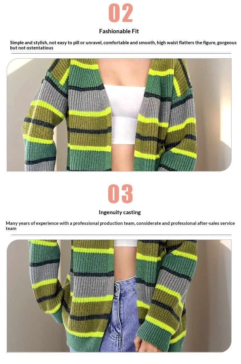 Fashion Women's Wear Striped Casual Cardigan Sweater