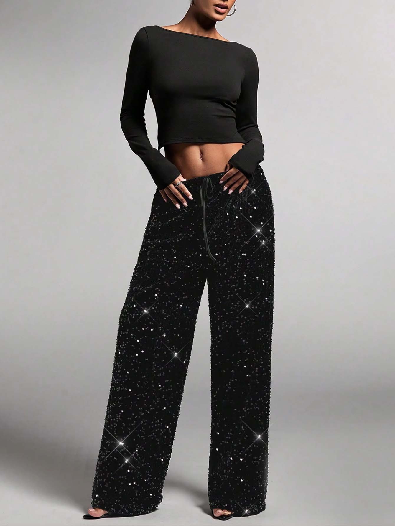 Fashionable Drawstring Slimming Straight-leg Pants For Women