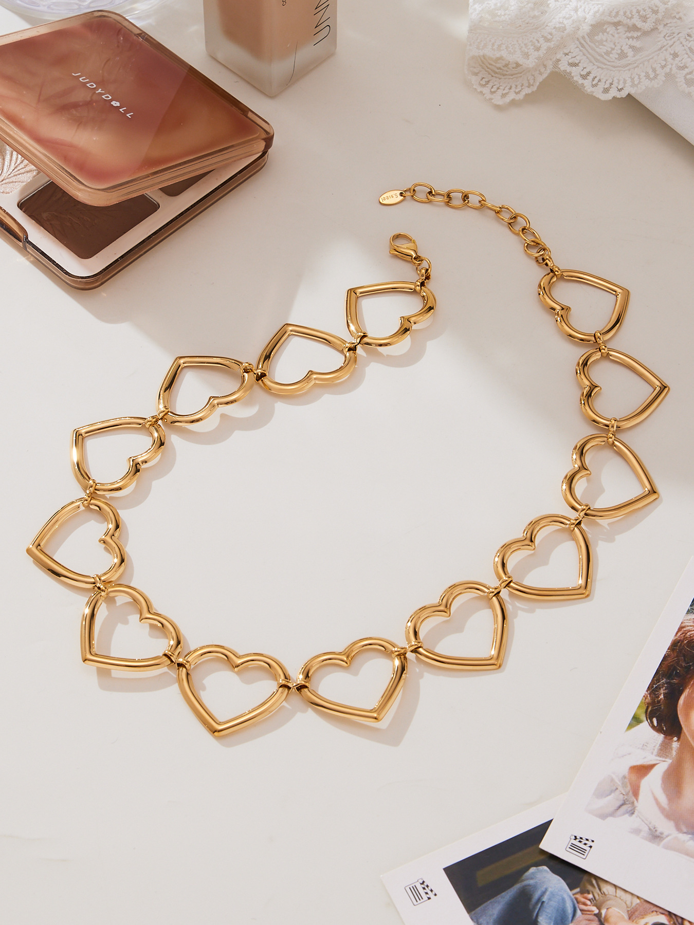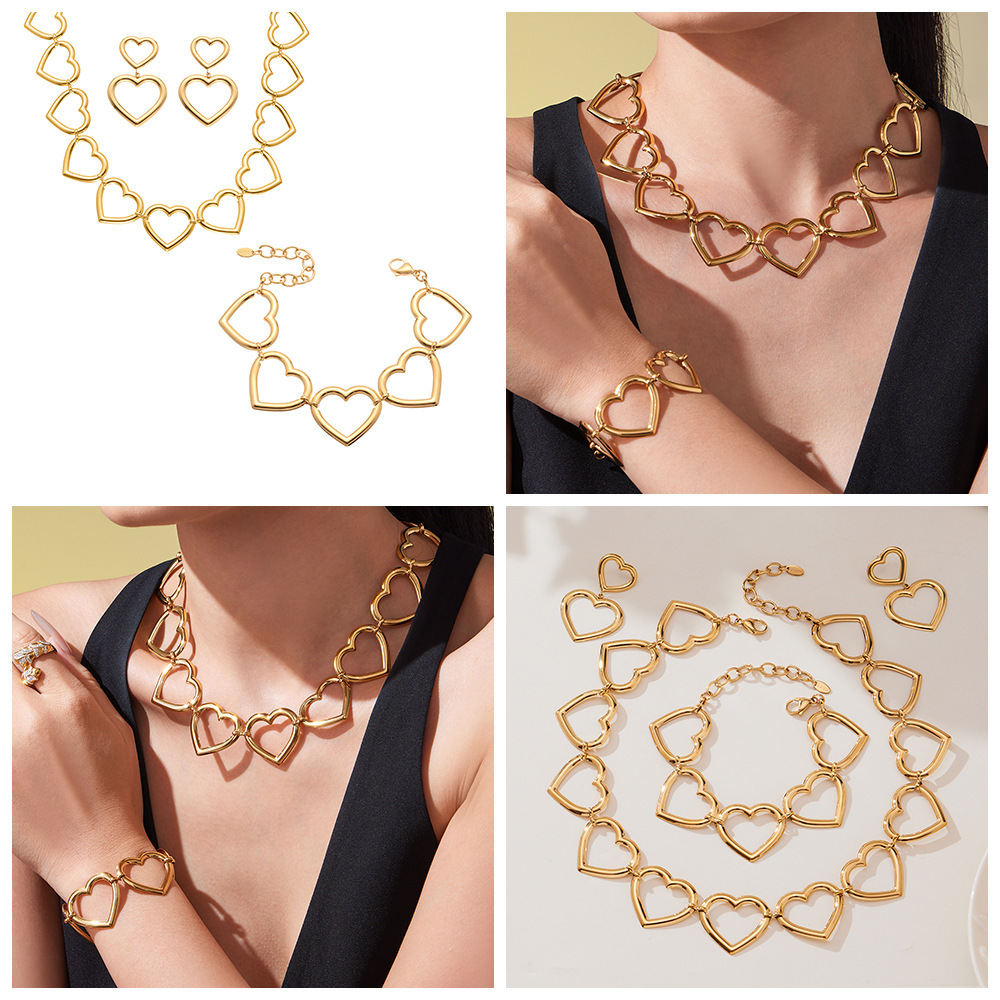 Fashionable Hollowed-Out Heart-Shape Patchwork Necklace