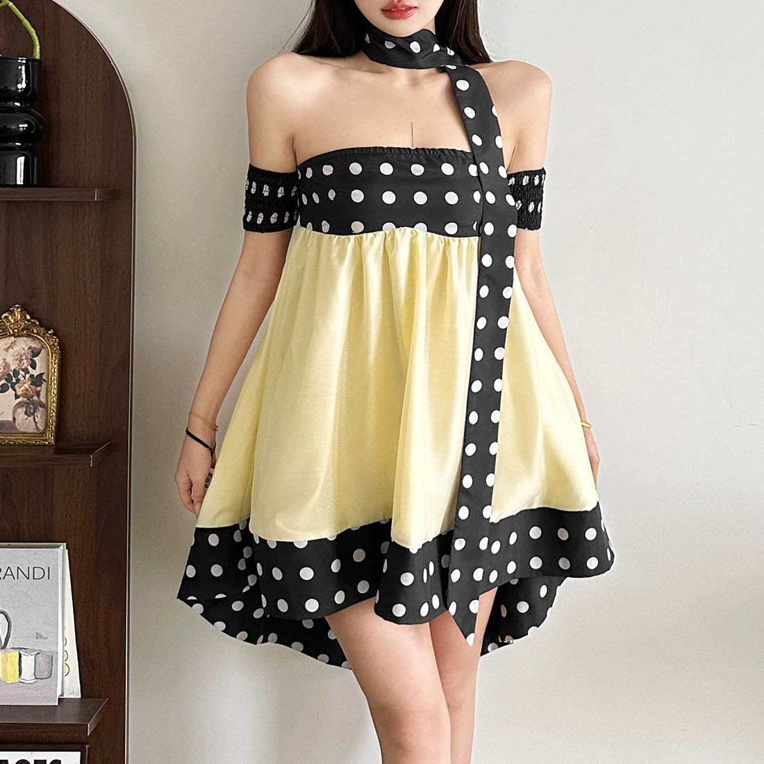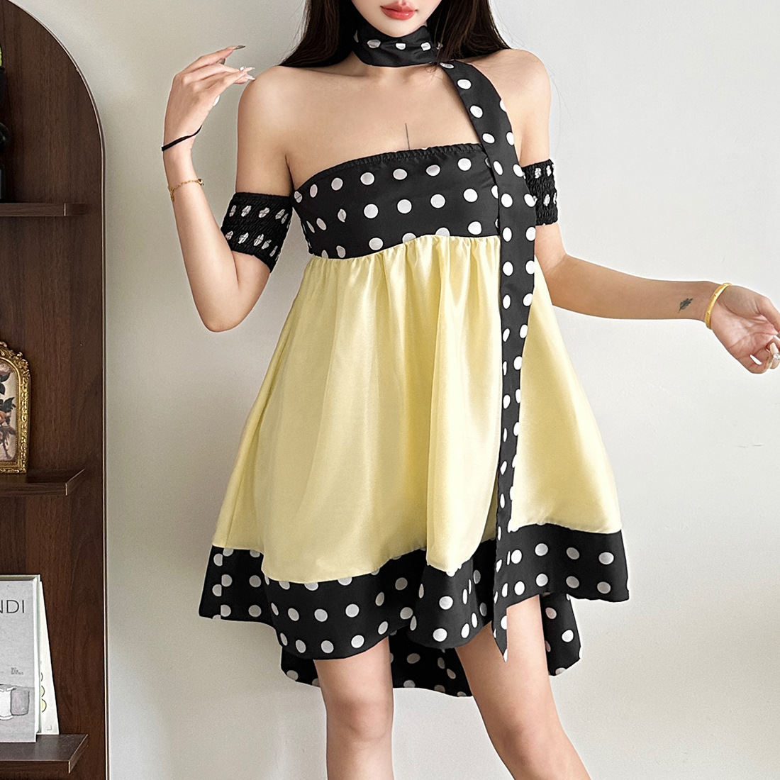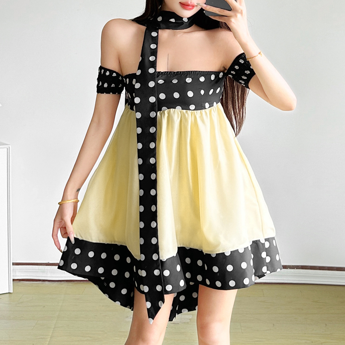 Irregular Print Polka-Dot Fashionable Off-Shoulder Sexy Dress For Women