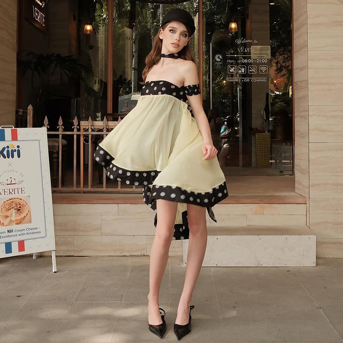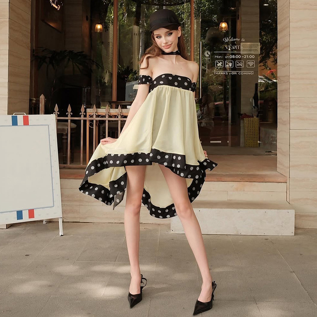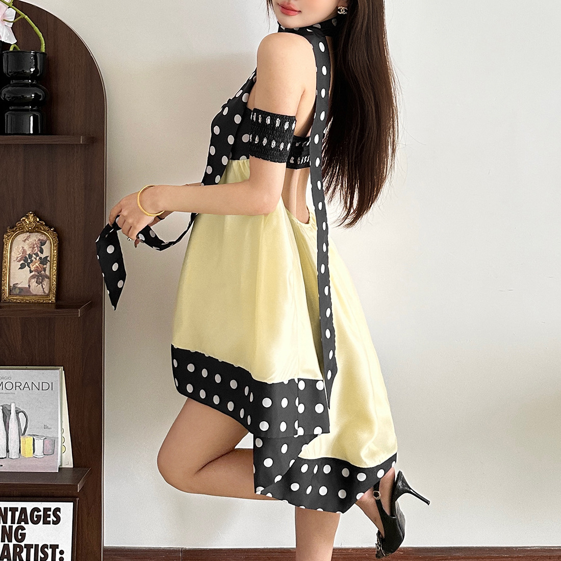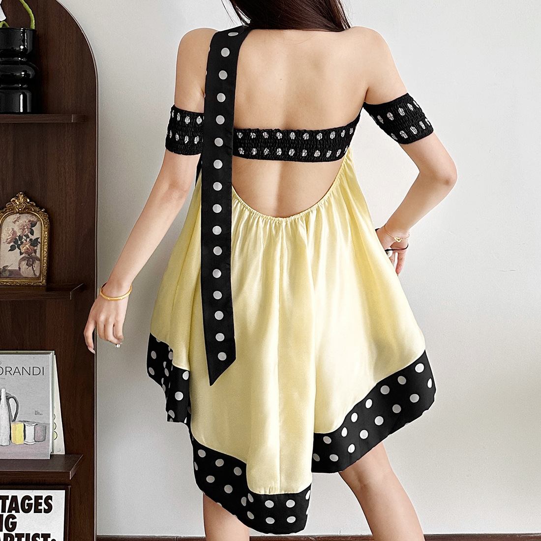 Irregular Print Polka-Dot Fashionable Off-Shoulder Sexy Dress For Women