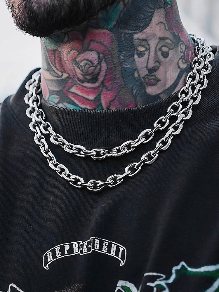 Mens Casual Versatile Stainless Steel Cuban Titanium Steel Necklace