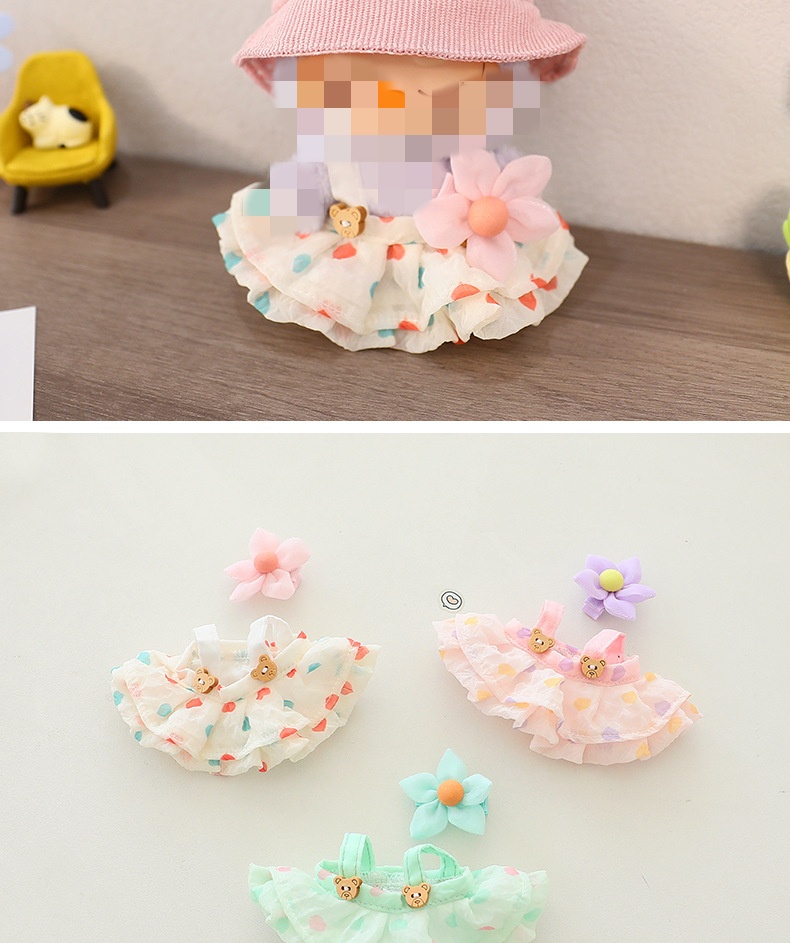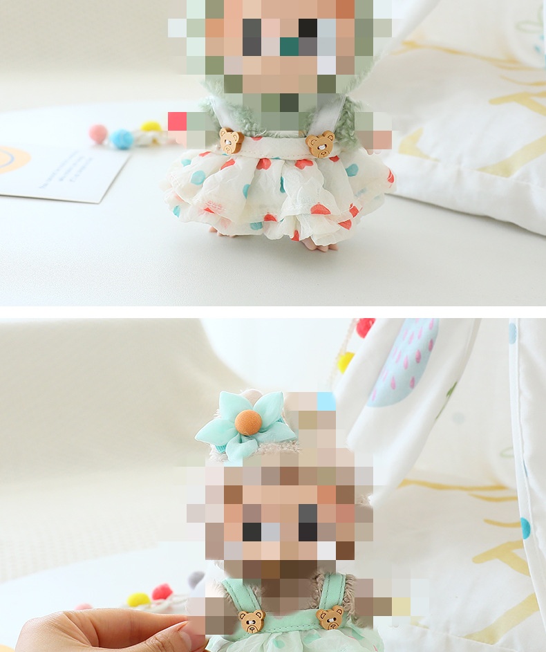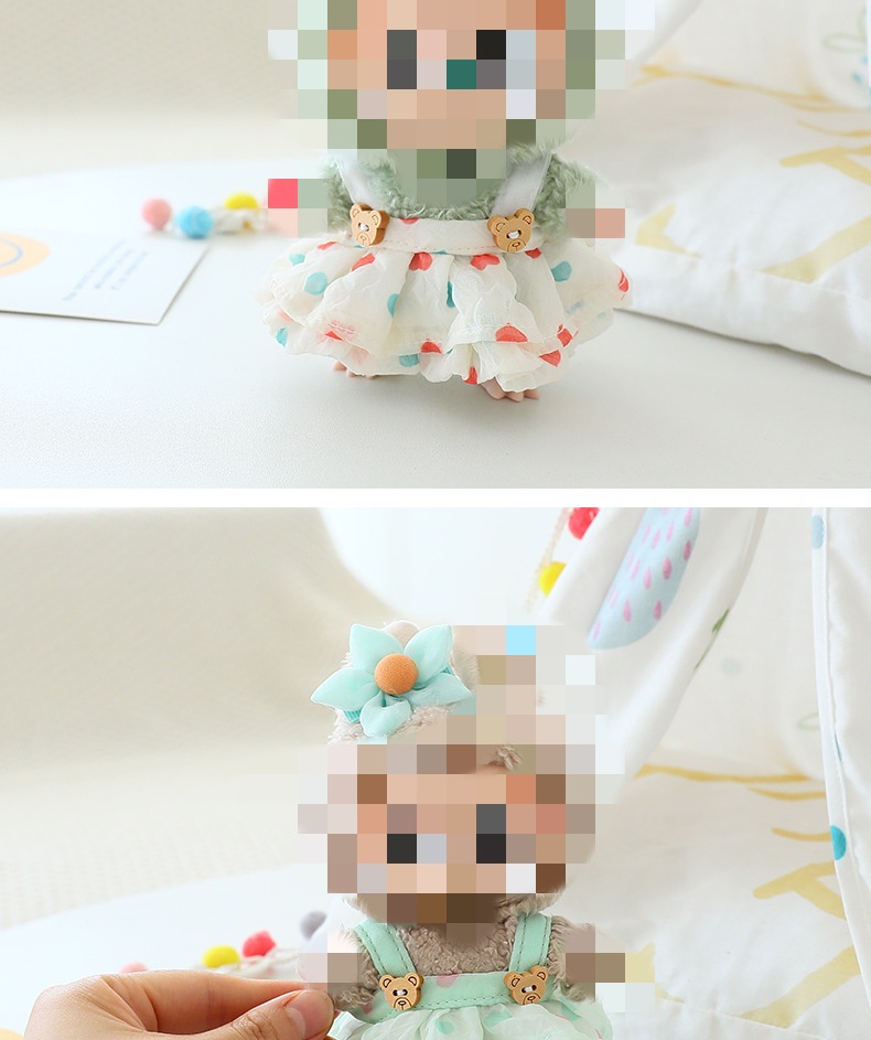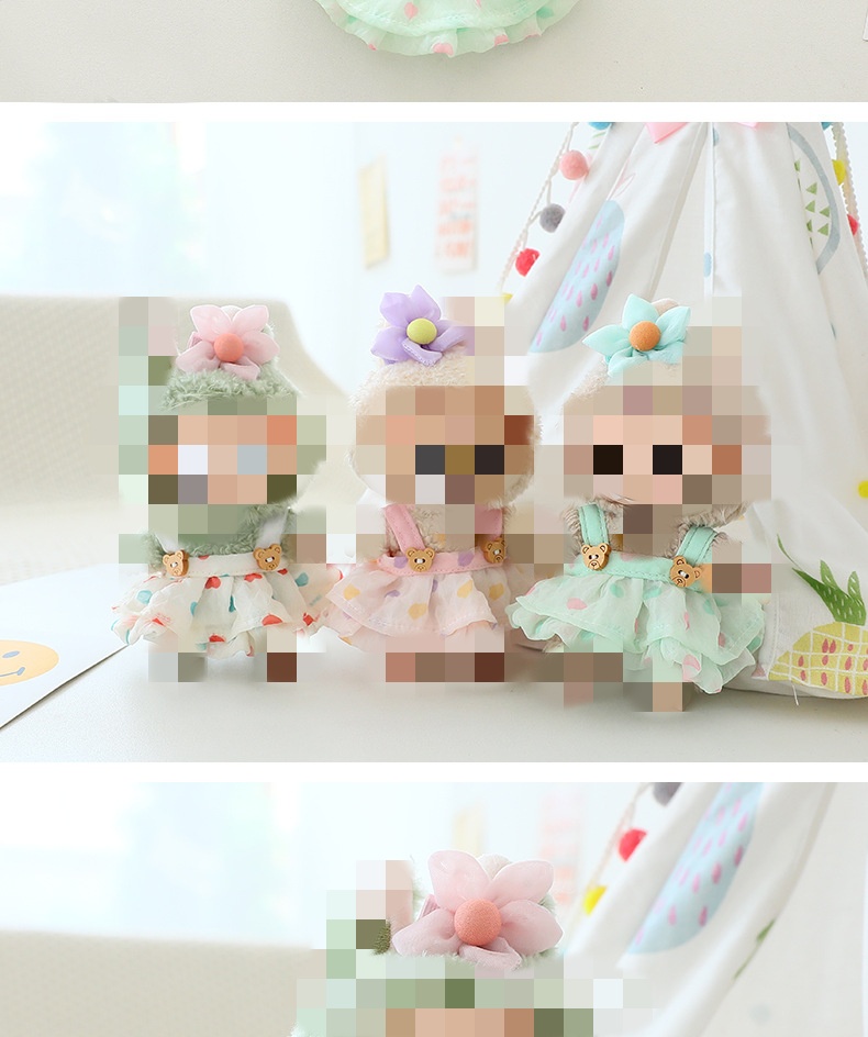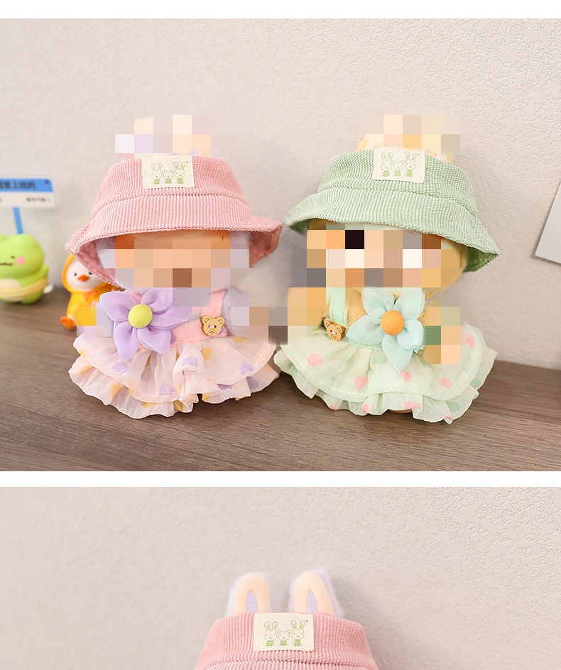 Color: pink bear dress (without doll), beige bear dress (without doll), green bear dress (without doll), pink bear dress pink casual hat (without doll), beige bear dress pink casual hat (excluding doll), green bear dress green casual hat (excluding doll), pink bear dress pink floral wave straw hat, beige bear dress pink floral wave straw hat, green bear dress yellow floral wave straw hat,