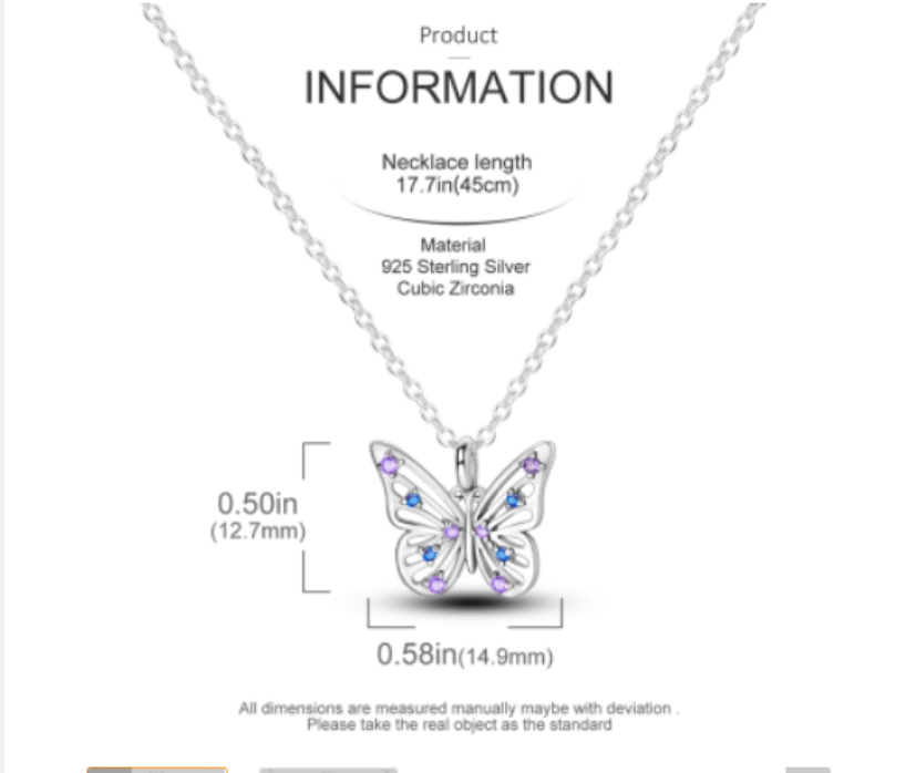 S925 Sterling Silver Colorful Zircon Butterfly Necklace Simple And Versatile