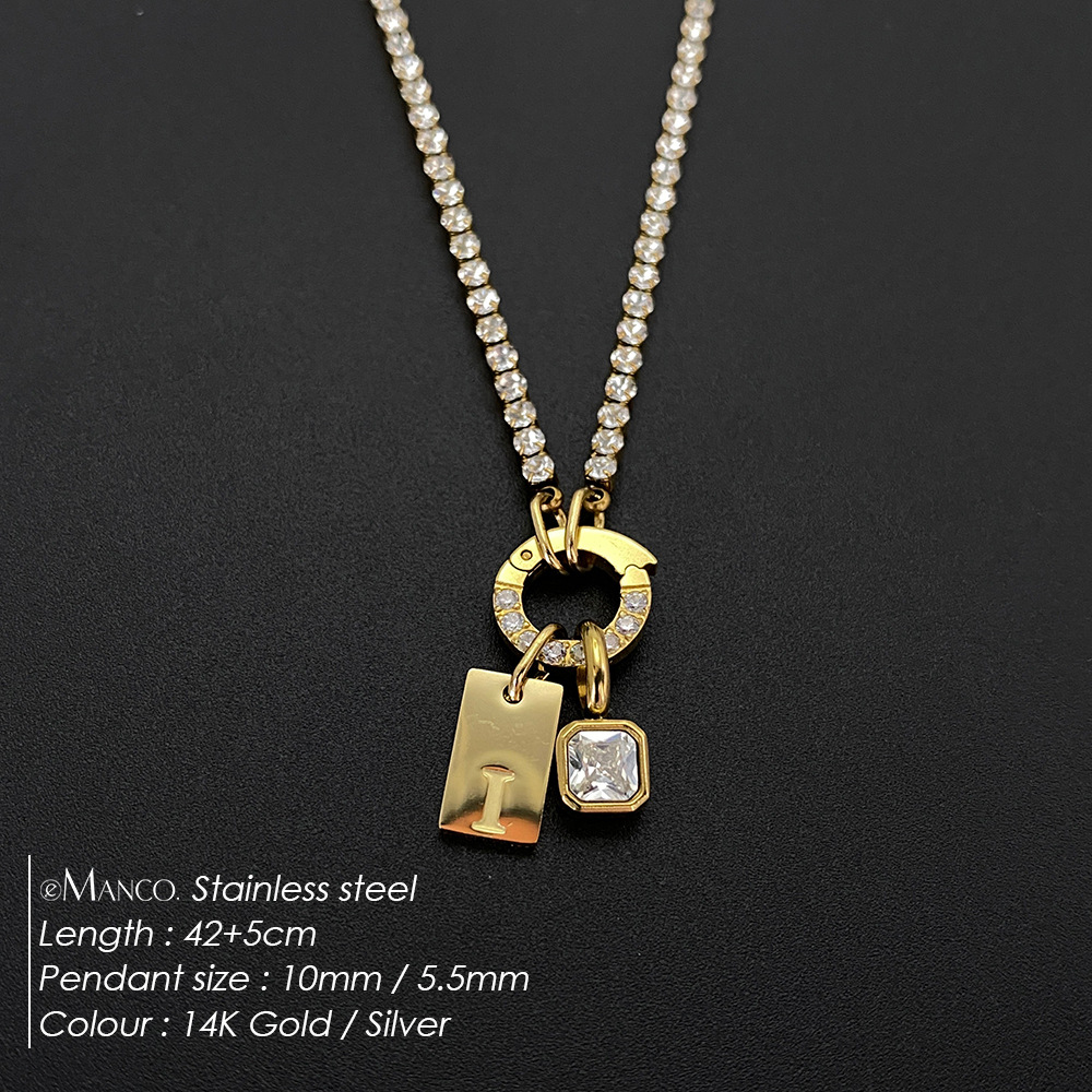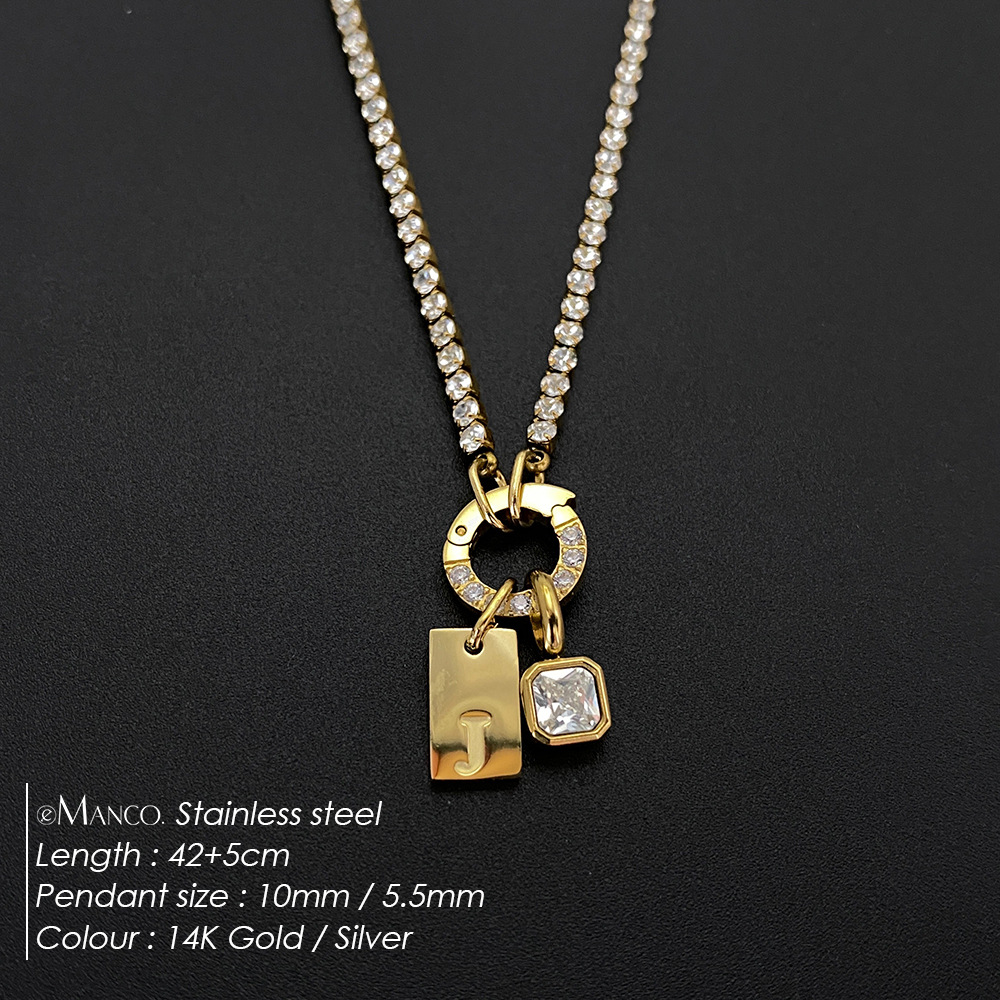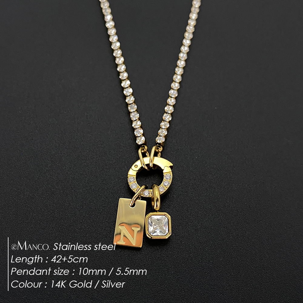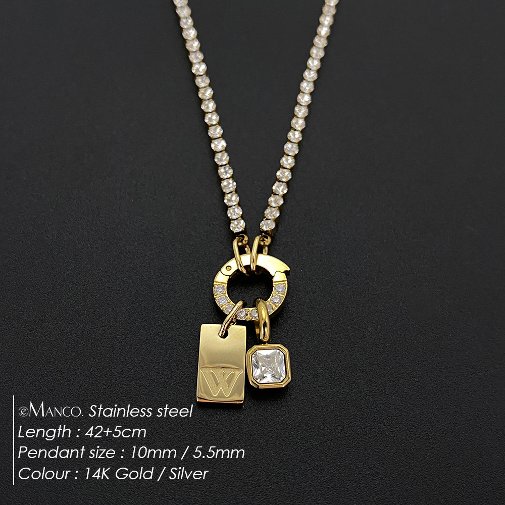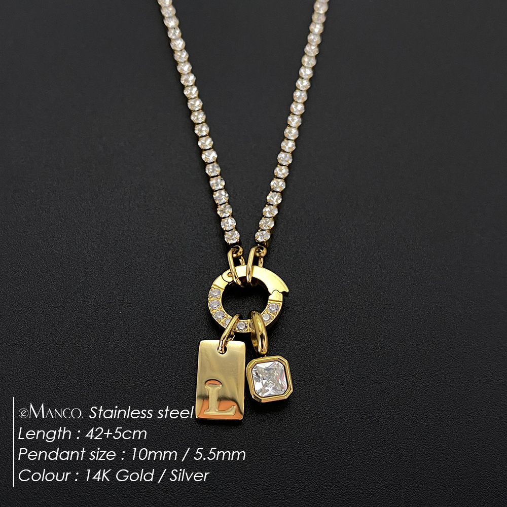 Titanium Steel Non-fading Letter Rhinestone Combination Necklace