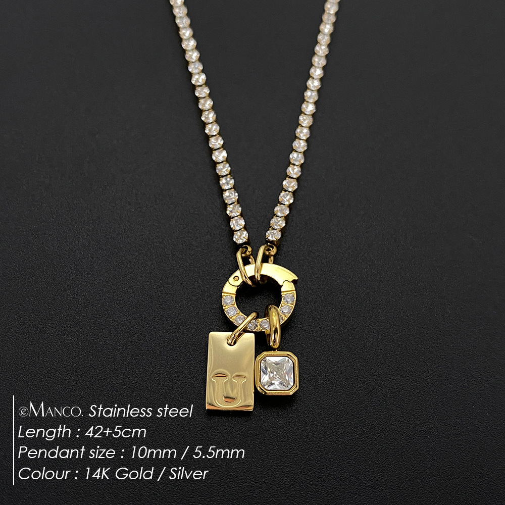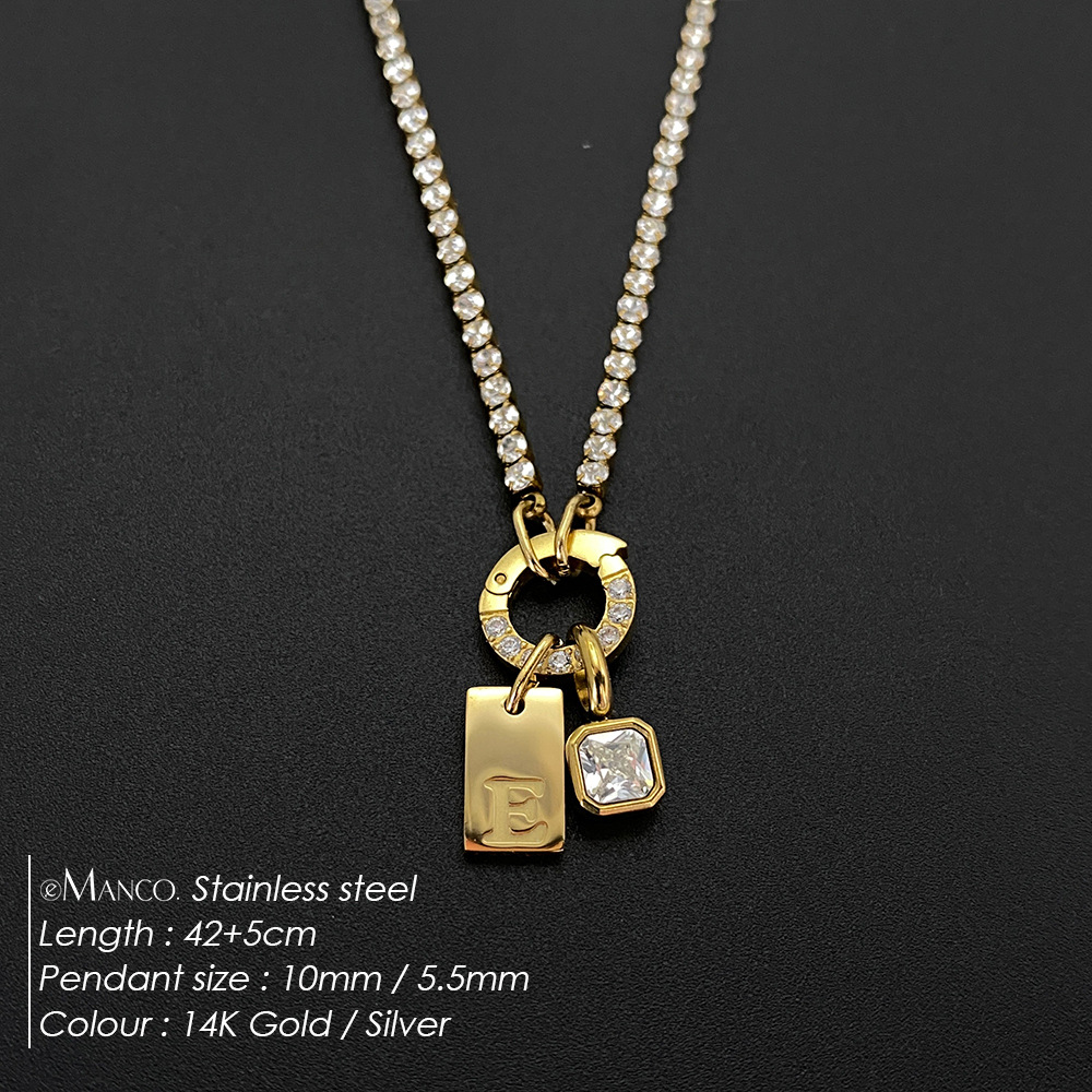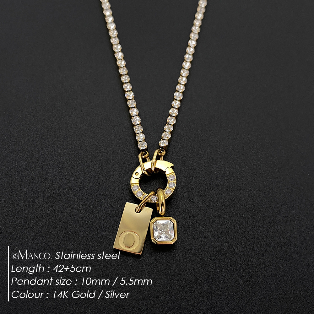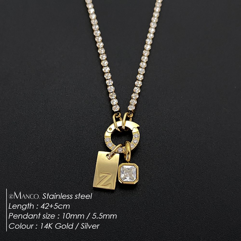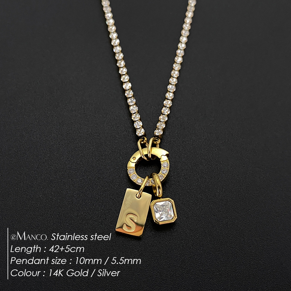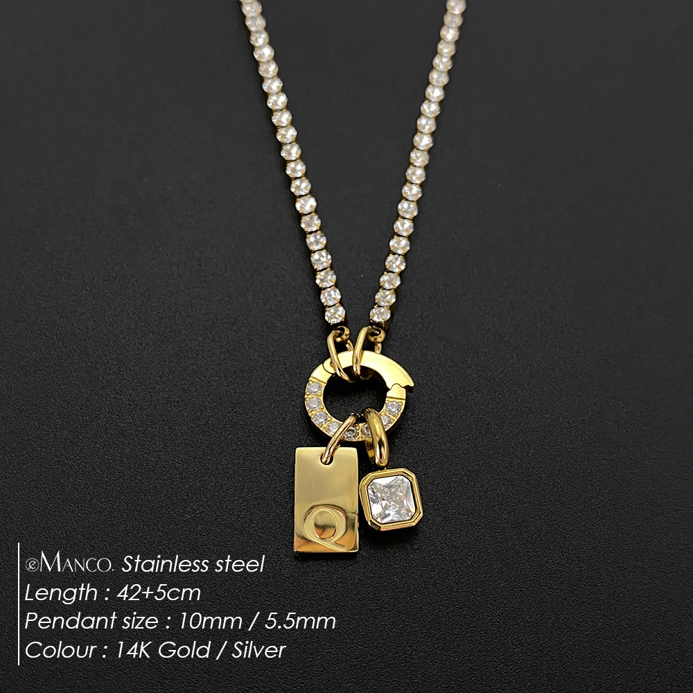 Titanium Steel Non-fading Letter Rhinestone Combination Necklace