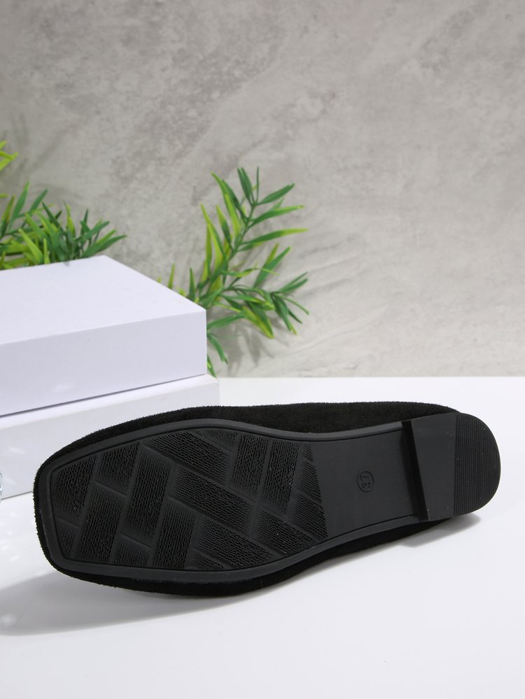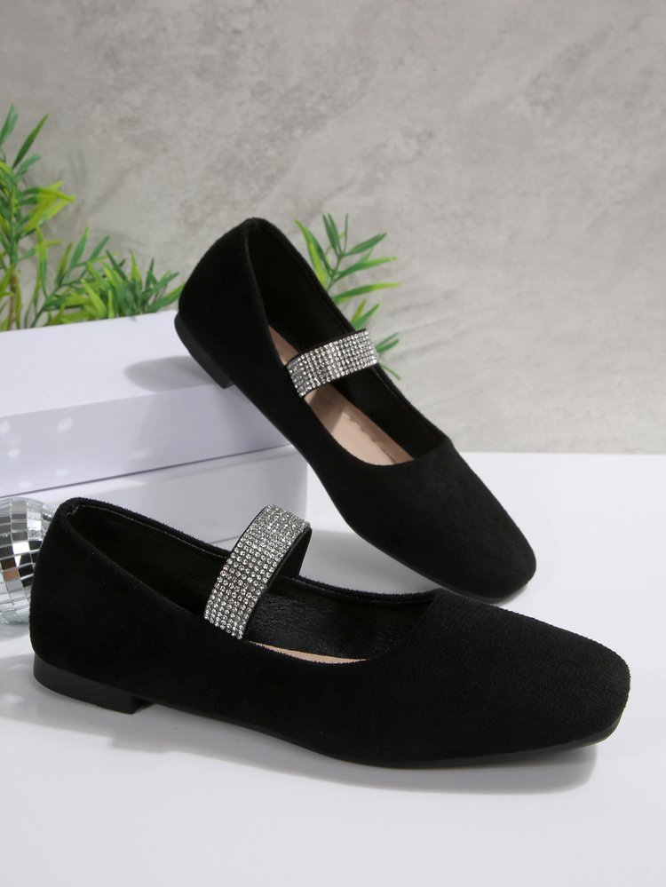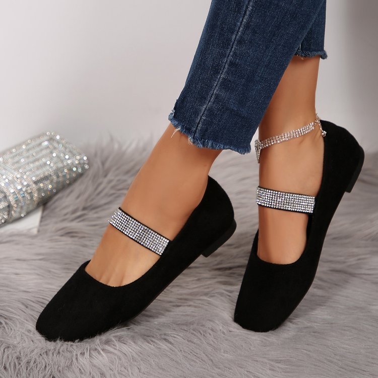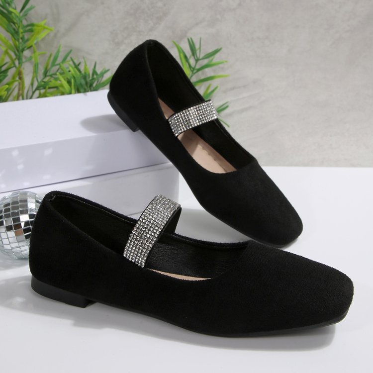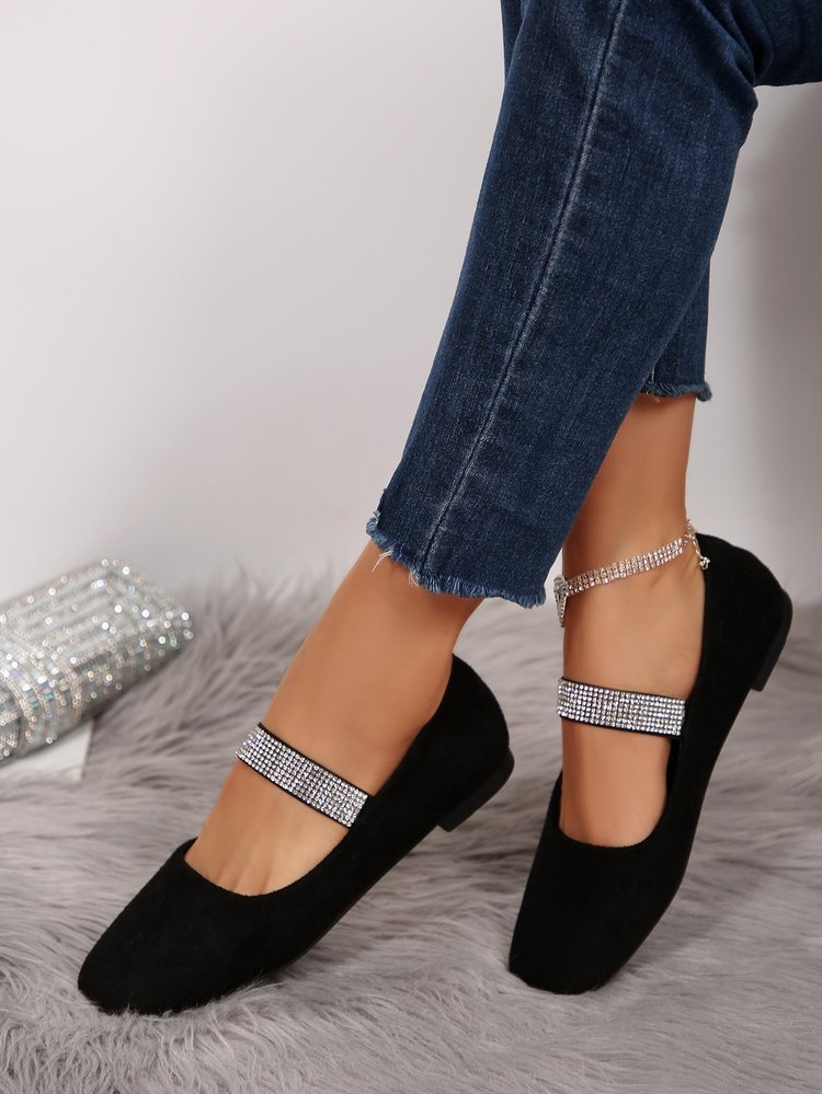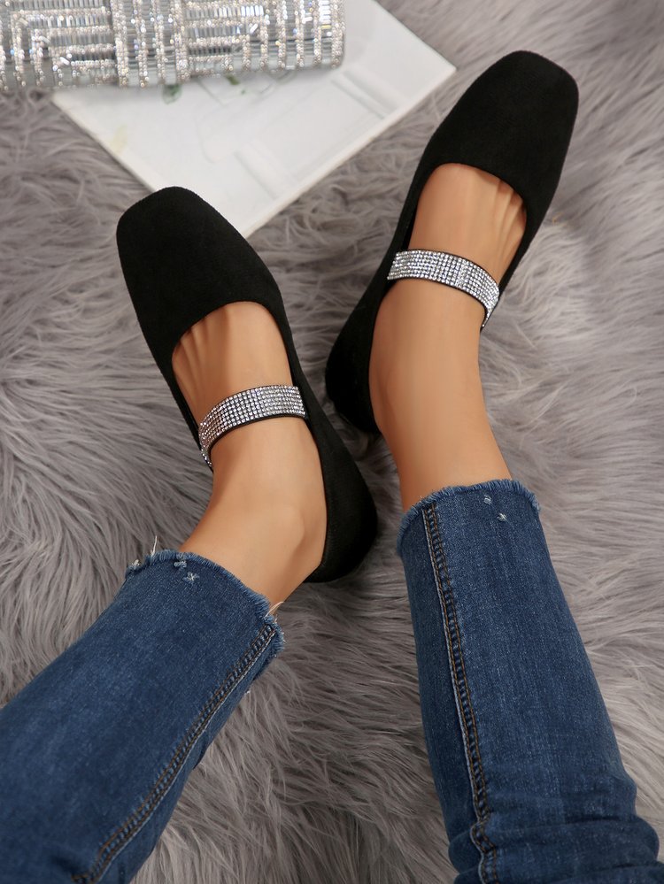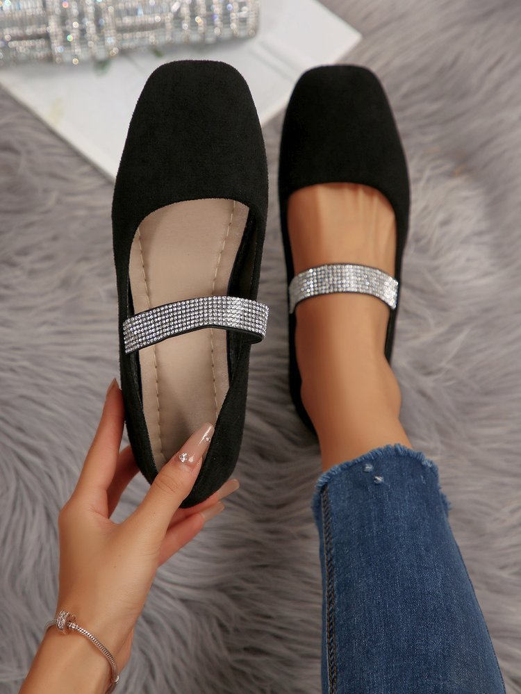 Women's Rhinestone Square-toe Shallow-mouth Suede Flat Shoes